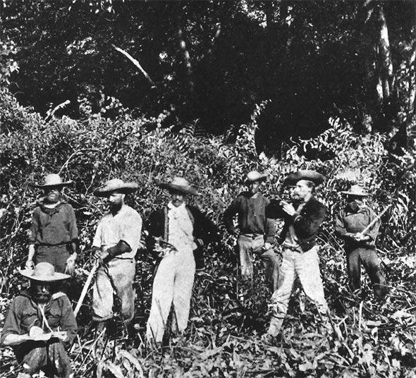 Mapping the route for the Panama railroad through thick jungle and swamp. Built in five years between 1850 and 1855, it cost thousands of lives but made a fortune for its owners.
